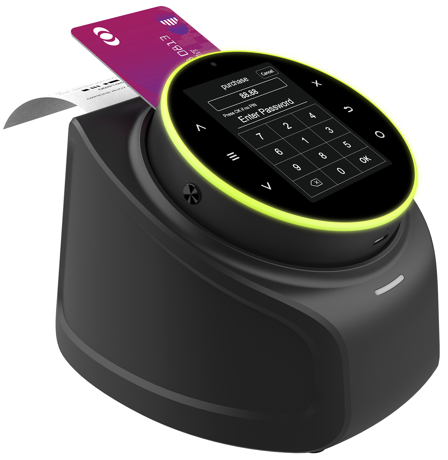 with built in contact, contactless NFC, magstripe reader, dual-camera / scanner for QR payments, and Biometrics.